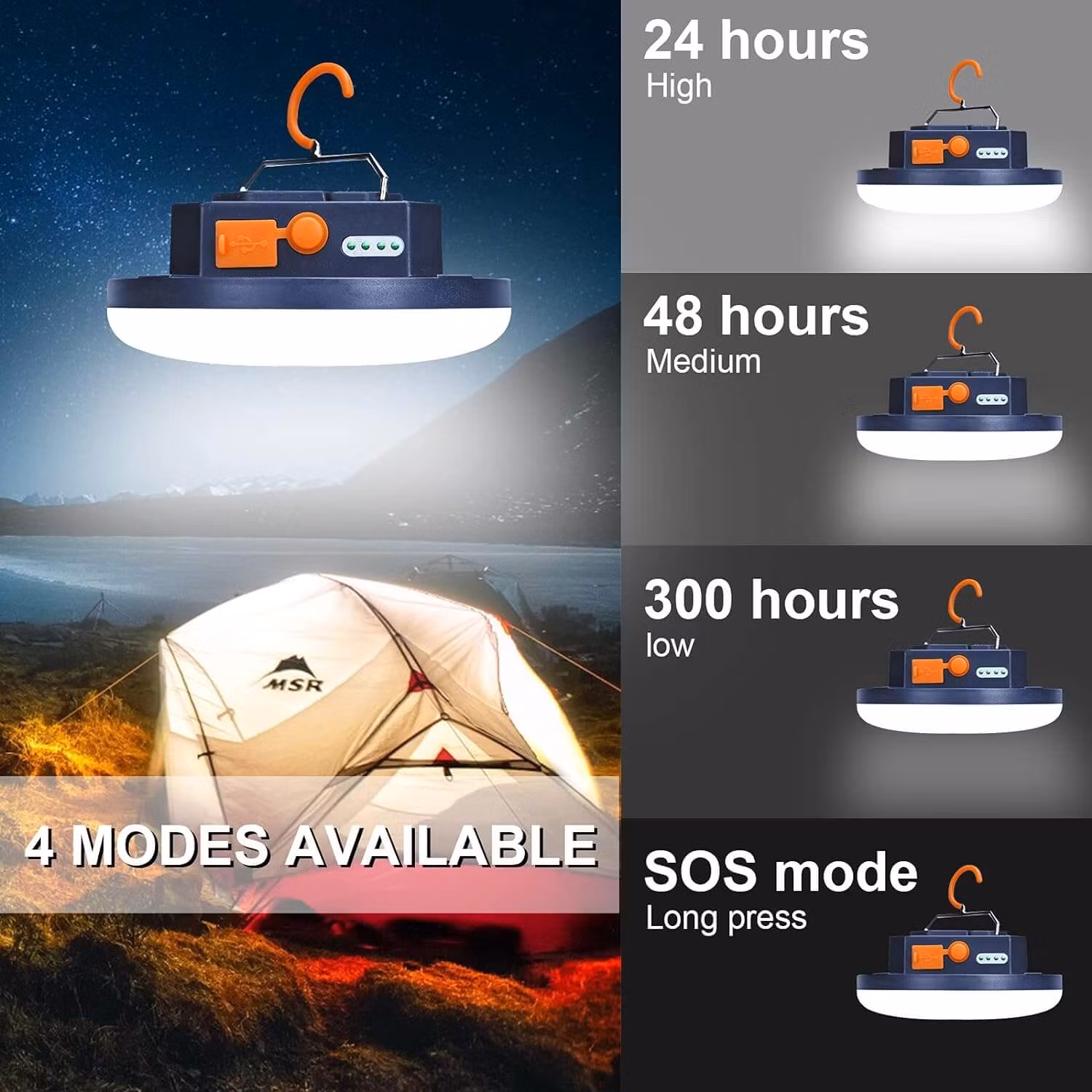 An emergency lantern that provides up to 24 hours of illumination and features three adjustable brightness levels as well as an SOS mode.