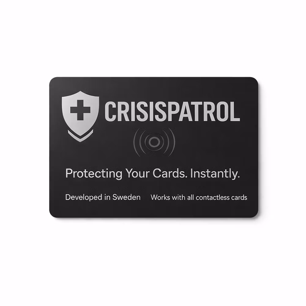 Contactless cards make life easier — but they can also be scanned without your knowledge. With the CrisisPatrol™ Protection Card, you add an extra layer of security to your wallet in seconds.