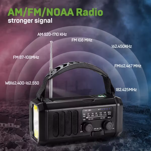 Always ready when you need it the most! Emergency Wave is a powerful and versatile emergency radio that provides the security you need during power outages, storms, or when you're far from civilization. With a robust design, multiple charging options, and essential emergency functions, this radio is a must-have for your emergency preparedness kit.