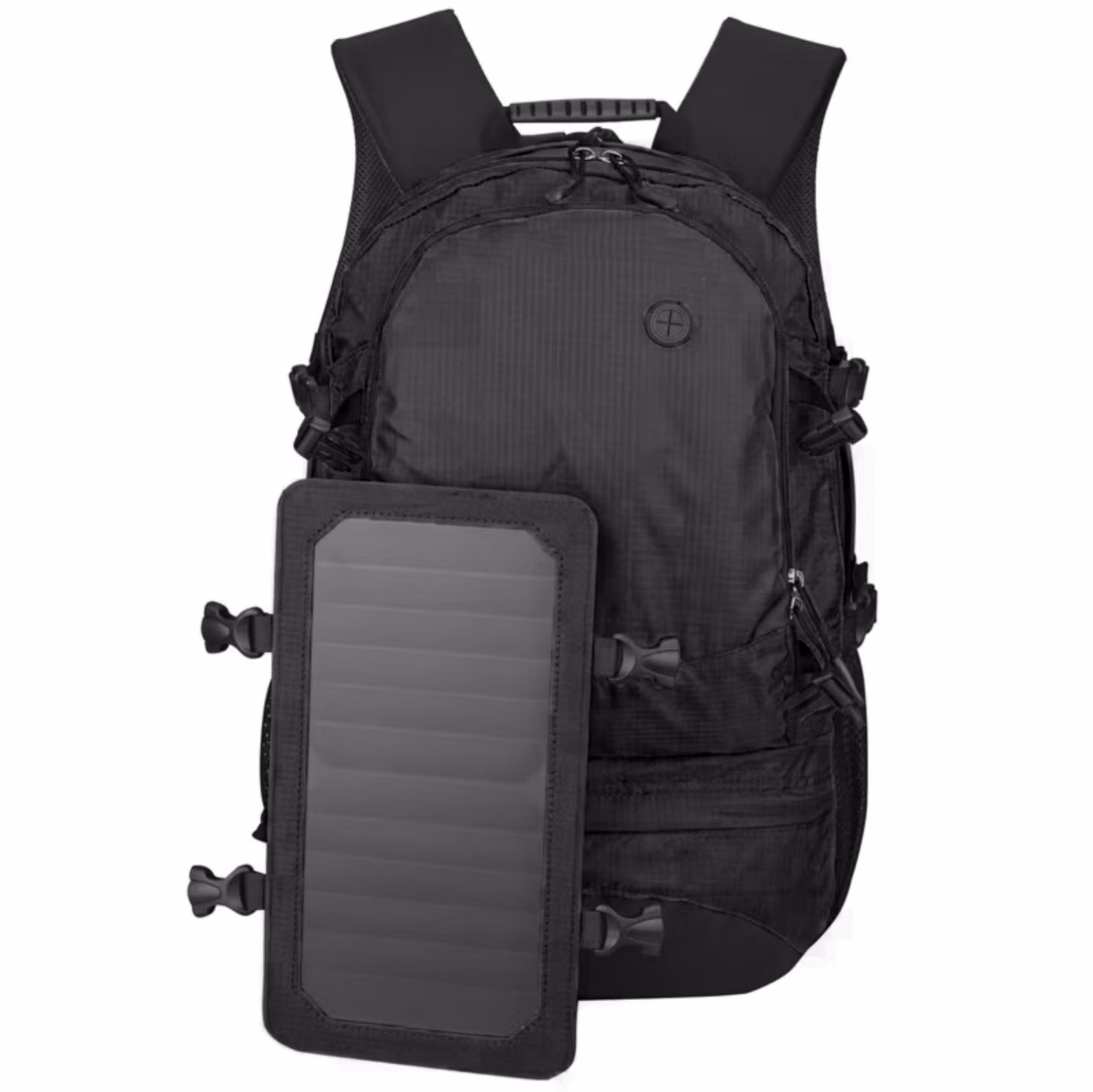 The backpack features a 7-watt solar panel with a transmission efficiency of 22%. It is built into a protective, scratch-resistant layer and sewn into durable PVC material to withstand outdoor conditions.