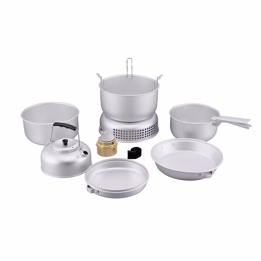 Classic Complete Storm Cooker with a Spirit Burner and a Set of Aluminum Cooking Pots!