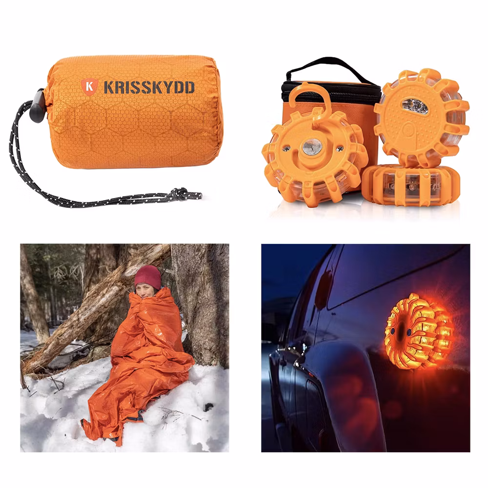 Super offer on Krisskydd's emergency sleeping bag and warning light!