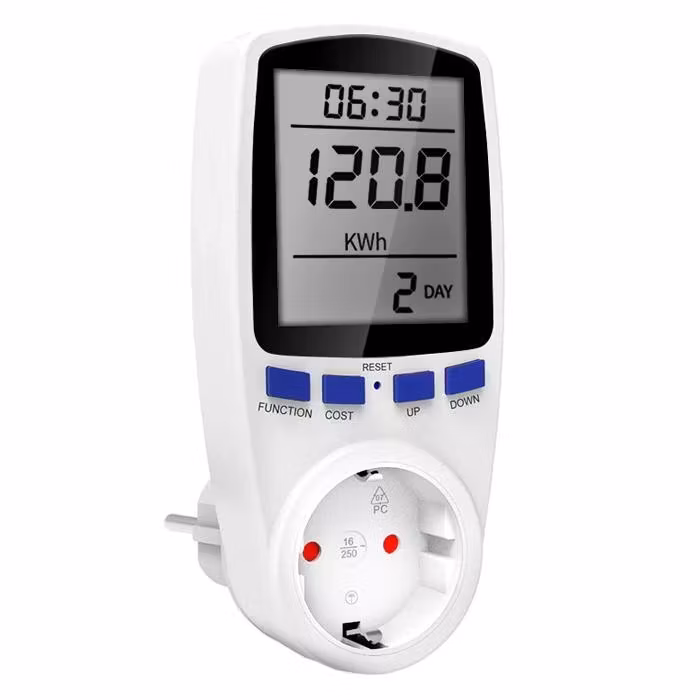Stromzähler für Steckdosen, mit denen Sie den Energieverbrauch in Ihrem Zuhause messen können. Dank dieses Stromzählers können Sie ganz einfach überprüfen, welche Geräte am meisten Energie verbrauchen, und so den Stromdieben das Handwerk legen.